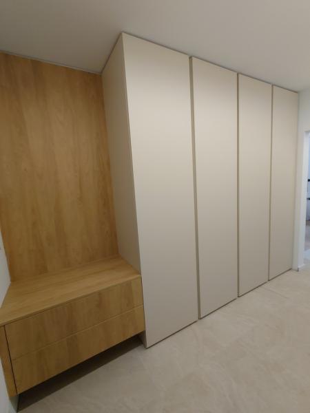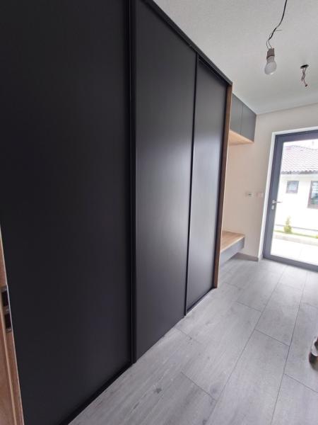 Navrhnem vnútorné členenie presne podľa vašich potrieb: police, tyče na šaty, výsuvné koše, zásuvky, zrkadlá, osvetlenie. Dvere môžu byť posuvné, klasické alebo kombinované so sklom či zrkadlom. Skrine perfektne zapadnú do interiéru a poskytnú vám poriadok a estetiku v jednom.